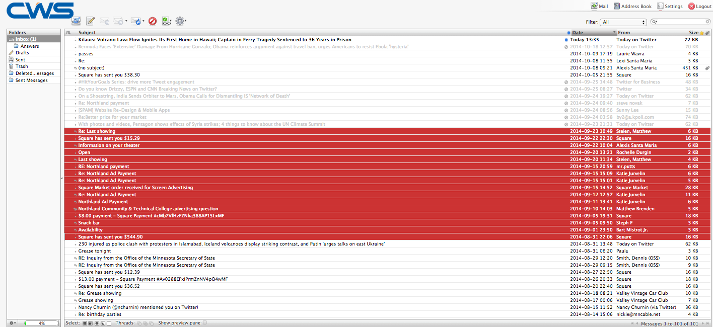 1) In a web browser, go to mailbox.cws.net & log-in with your eMail as a Username address & your eMail password.