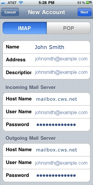 Host Name: mailbox.cws.net